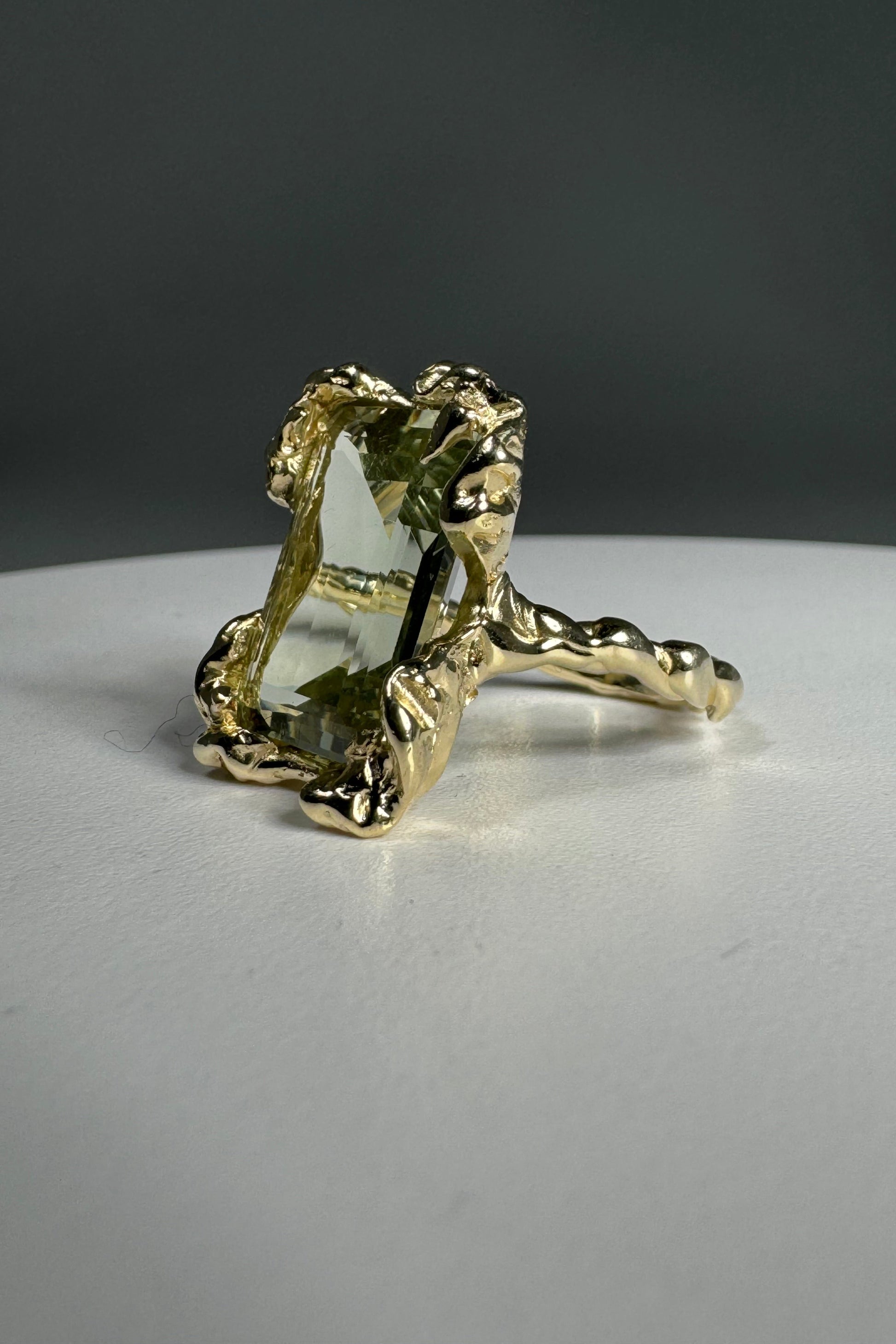 My signature frilly border surrounds an emerald cut Mint Quartz, at 18x13mm. An eyecatching, dramatic, romantic piece.
