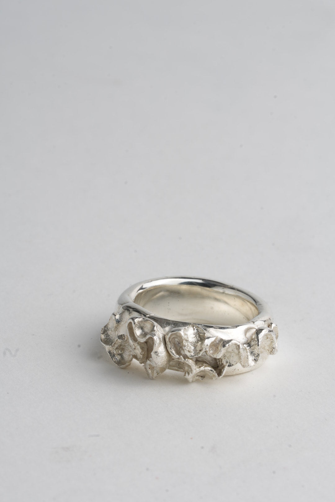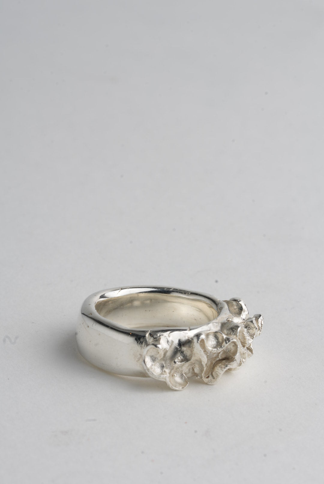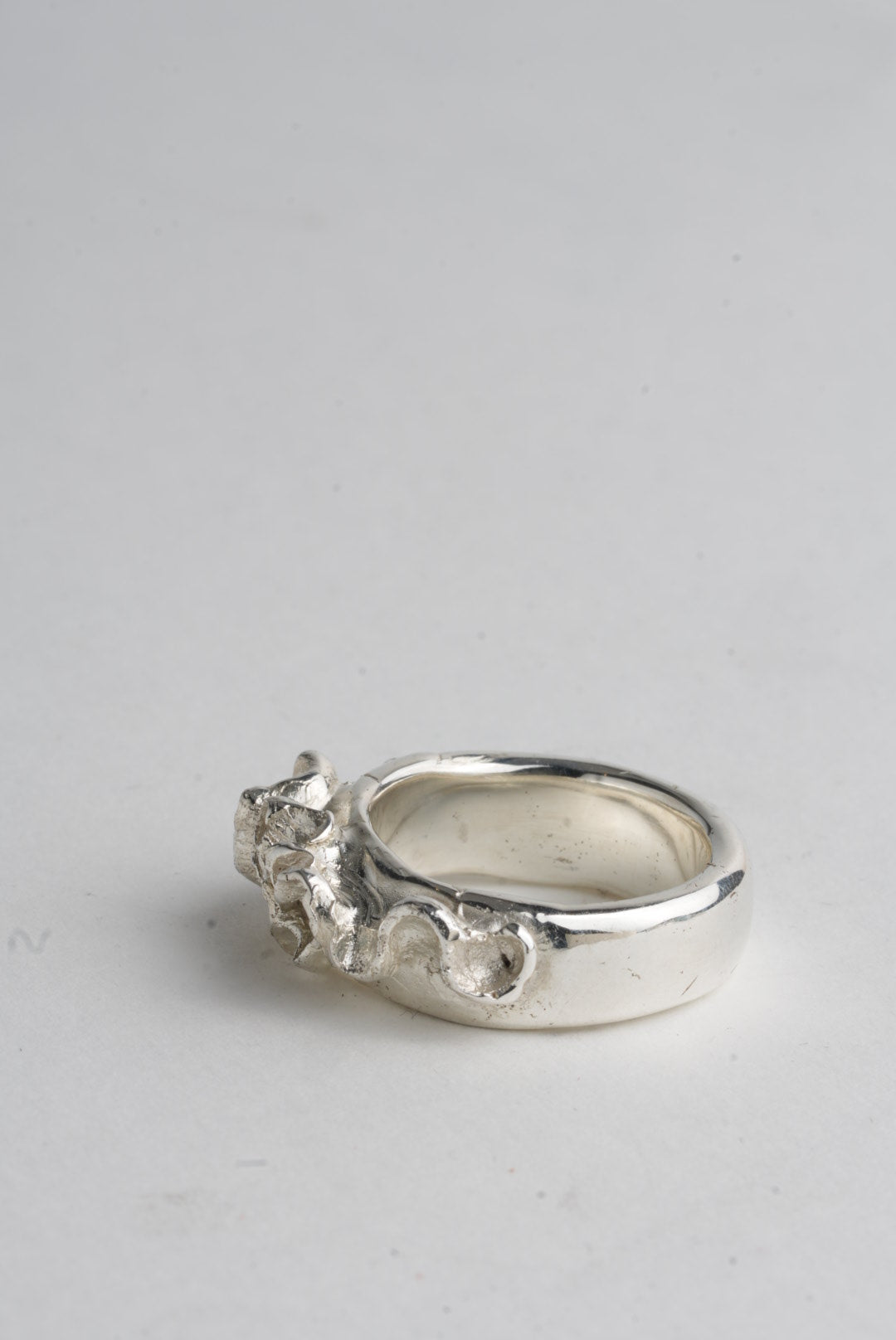 Metal flourishes on a highly polished, smooth, comfy & chunky wide band.